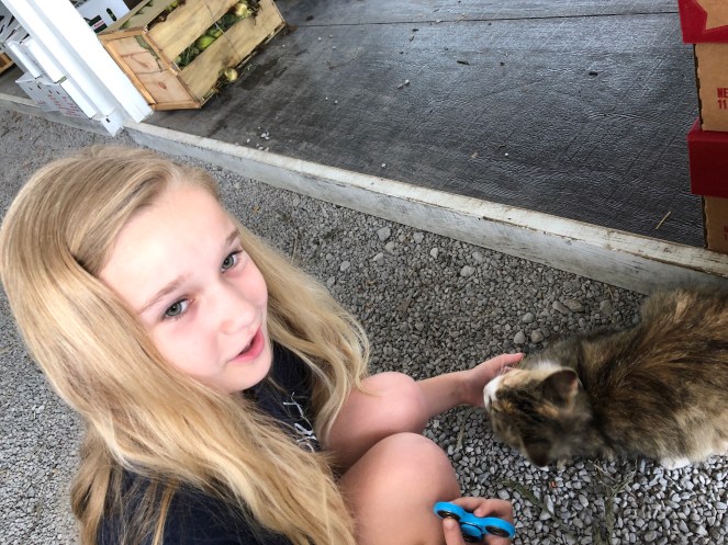 There was a sweet cat there that the girls loved petting. It had just had kittens which they caught a few glimpses of. Probably for the better that they didn’t hold them. They would have fallen in love and tried talking me into another pet. (Um, no.)