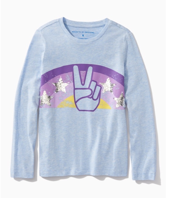 Here are the items the girls chose this time. The first top we kept for both girls. I love that they still like to match.