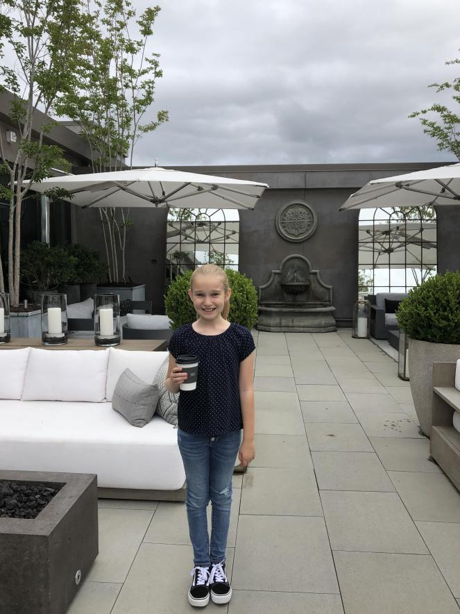 A hostess greeted us, and immediately made us feel at ease. There wasn’t a table available, and a 30 minute wait, so they gave us the option to put our name down for a table and wait, or take a to-go cup upstairs to the roof. My girl had wanted the formal tea service, but decided to go ahead to the roof so we could have time to shop afterward, so that’s we we did.