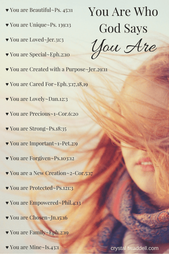 Who I am in Christ. This is a series of mantras that come from Joyce Meyer, author and speaker. How often do we get in our own heads? We say negative things about ourselves, focusing on all the things that we think are wrong with us. What if you spent that same mental energy focusing on what is right about you? What if you focused on who God says you are? You can find a sermon where Joyce Meyer shares these. Just do a simple Google or YouTube search for “Who I am in Christ Joyce Meyer.” Be prepared for an emotional reaction when you hear them aloud. You may tear up, the truth resonating with every fiber of your being. Again, you can find a similar and equally powerful list of mantras in this post. Consider printing them out and posting them somewhere you will see them everyday. Better yet, write them out. That way you can commit them to memory and hold them in your heart and mind.