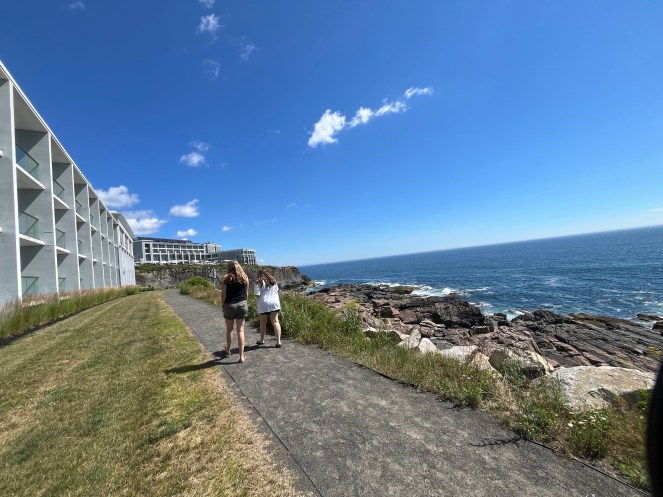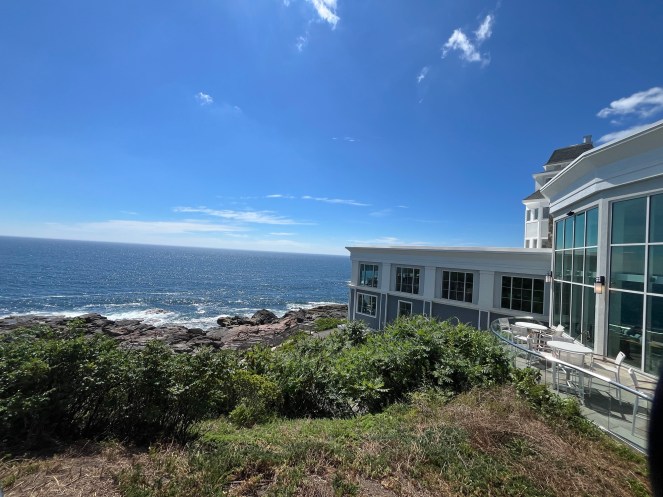 Our first stop was one of my favorite parts of our entire trip. We visited The Cliff House, a luxury hotel located in Cape Neddick, near Ogunquit. The hotel is oceanfront on the cliffs in southern Maine, and such an exquisite hotel with an even more exquisite view! I did not want to leave. You will want to make your way through the courtyard where the firepit is located and back toward the pool area. Be sure to walk along the back side of the hotel for a different and equally captivating view with every turn. There were lots of “oohs” and “ahhs” and so many pictures taken!