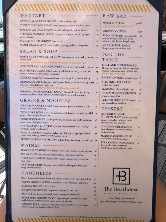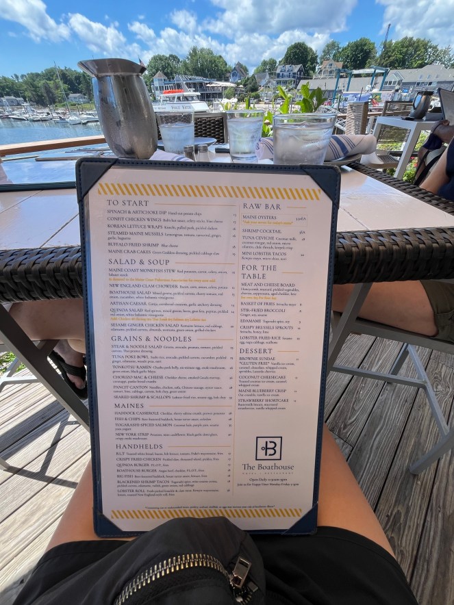 The star of the show was the food! The menu was amazing and made it challenging to decide. I find that is almost always a good sign that wonderful food is to come. I got the Maine Coast Monkfish Stew. Sound strange? If you’ve never tried monkfish you are truly missing out; it’s known as “poor man’s lobster” because it has such a similar flavor to lobster, but more affordable. In this soup I really couldn’t distinguish it from it’s fancier counterpart. I also got the lobster fried rice which was such a generous serving and a table favorite. We had lobster rolls in our future later in the evening and the girls teased me about getting lobster items for lunch too, but my love for lobster runs DEEP. It is not possible to get tired of it. Why wouldn’t you get as much lobster as possible while in “lobster land?” We live in landlocked Tennessee and I am convinced now that the flavor and the freshness factor is nowhere near back home compared to what we got here. My friends got a burger and Korean lettuce wraps which they also loved! 100% recommend The Boathouse in Kennebunkport!