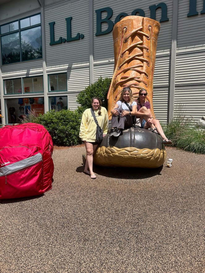 We flew out the next day, but before our flight we had time to enjoy breakfast together and spend a couple of hours at LL Bean and the other outlets in Freeport. I could not have been prepared for how big LL Bean was. It’s multiple buildings that cover several blocks, with other outlet stores nestled all around. And each LL Bean store held categories of items. There was an LL Bean store that was primarily clothing (huge), another for camping, and another for boating. You get the idea. In front of the LL Bean clothing outlet is a photobooth experience where you can take a pic with the giant LL Bean boot or where the ginormous LL Bean backpack. It was fun to watch little kids put on this big backpack! Part of the charm of the area is that the Starbucks, McDonalds, and some other restaurants and stores were formally houses. The whole area is very walkable and there were also some amazing souvenir shops that allowed us to grab some gifts from our families.