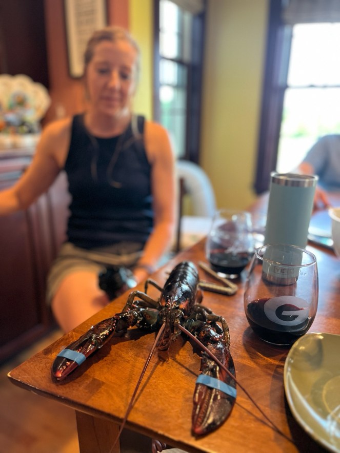 Finally, the cherry on top of this whole trip, we were treated to lobster rolls! You should know that you can get lobster rolls just about anywhere in Maine, even some gas stations had them. And you can pay big money for them too. Caryn had a friend who has access to lobster right off the boat, and all the best ingredients. Rolls buttered and toasted properly with lettuce and mayo. He came to her house and made them for us! This was definitely the best thing I put in my mouth on the entire trip and in my top ten for best bites of my life. Another friend and neighbor is a talented singer and guitar player and entertained us by the fire pit afterward. I will not forget this night or the hospitality!